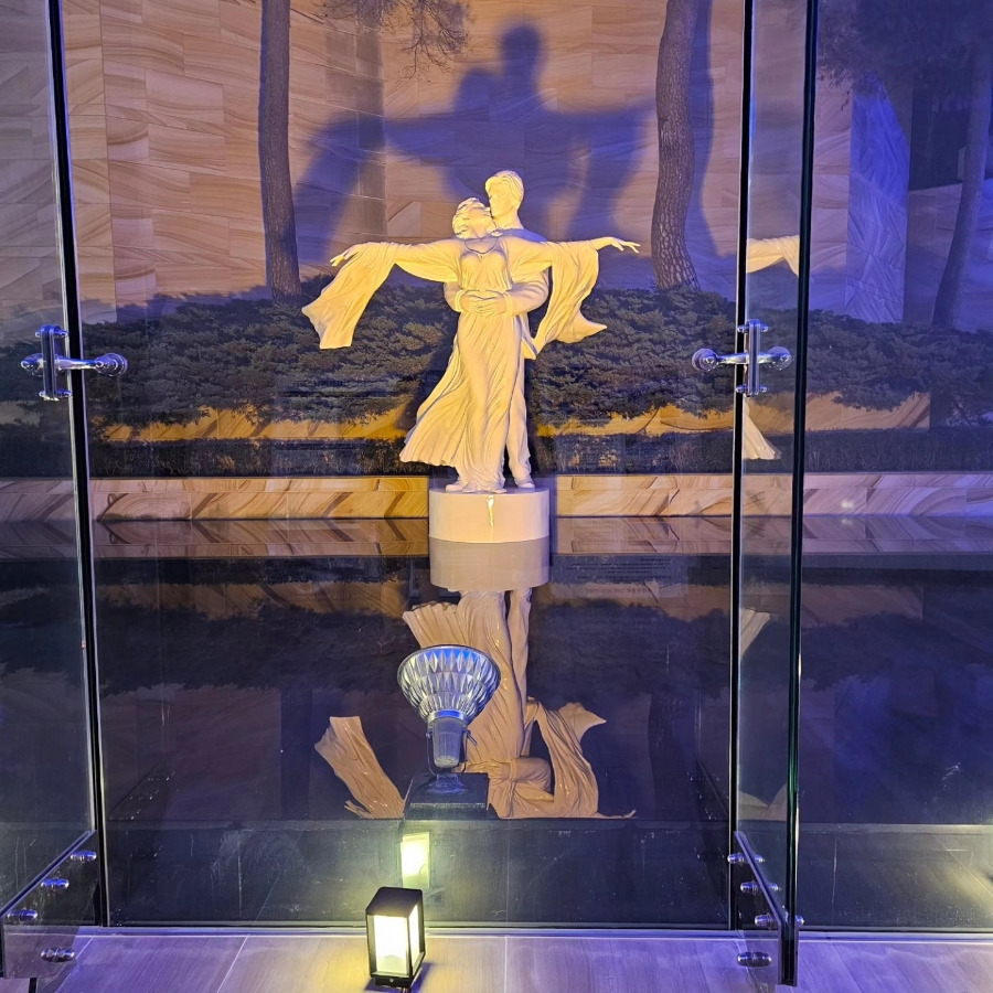 입구에 들어가는 길에는 양 옆으로 조각상과 함께 분수대가 존재해요!!